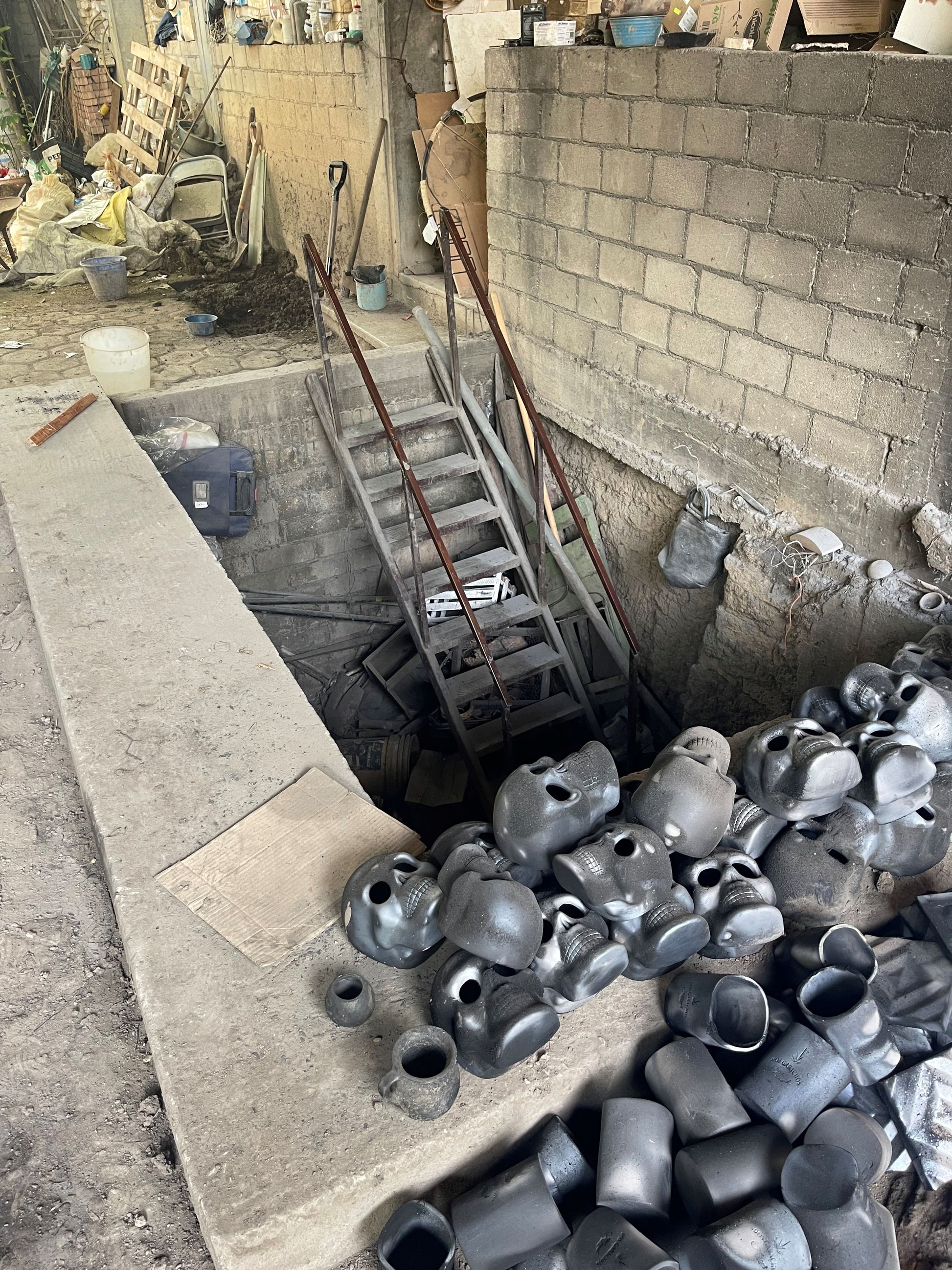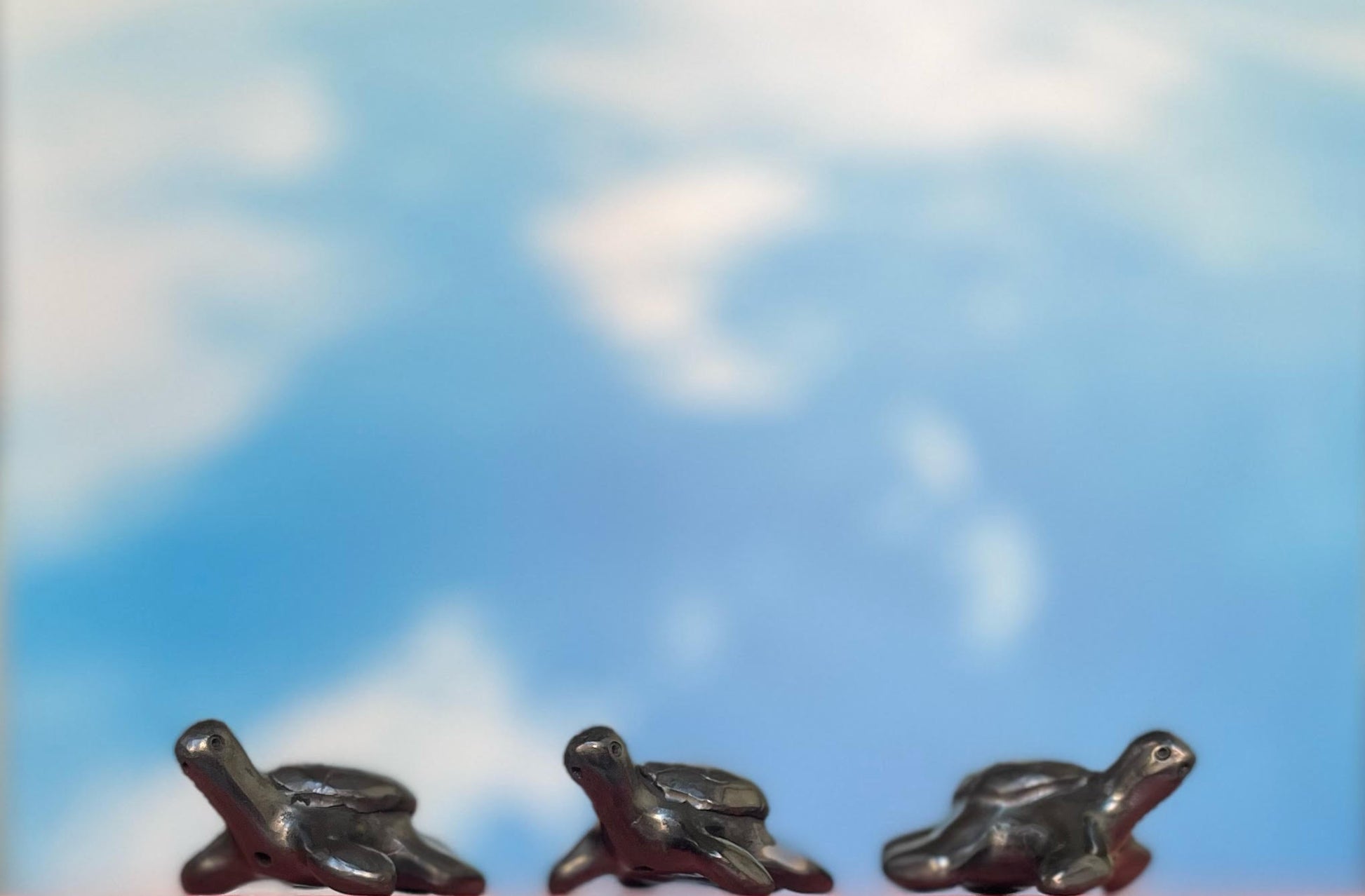 Our turtle whistles are made in a workshop that is called Dona Rosa Alfareia. They get the clay from a mine called Cerro Del Coyote. Once created, they put the piece in an underground kiln for 10 hours. Then they create the shine, they use water and quartz to polish each by hand. The friction between water and quartz creates a finish. The smoke and heat turn the clay black naturally. This is specific to the area and the kiln process.