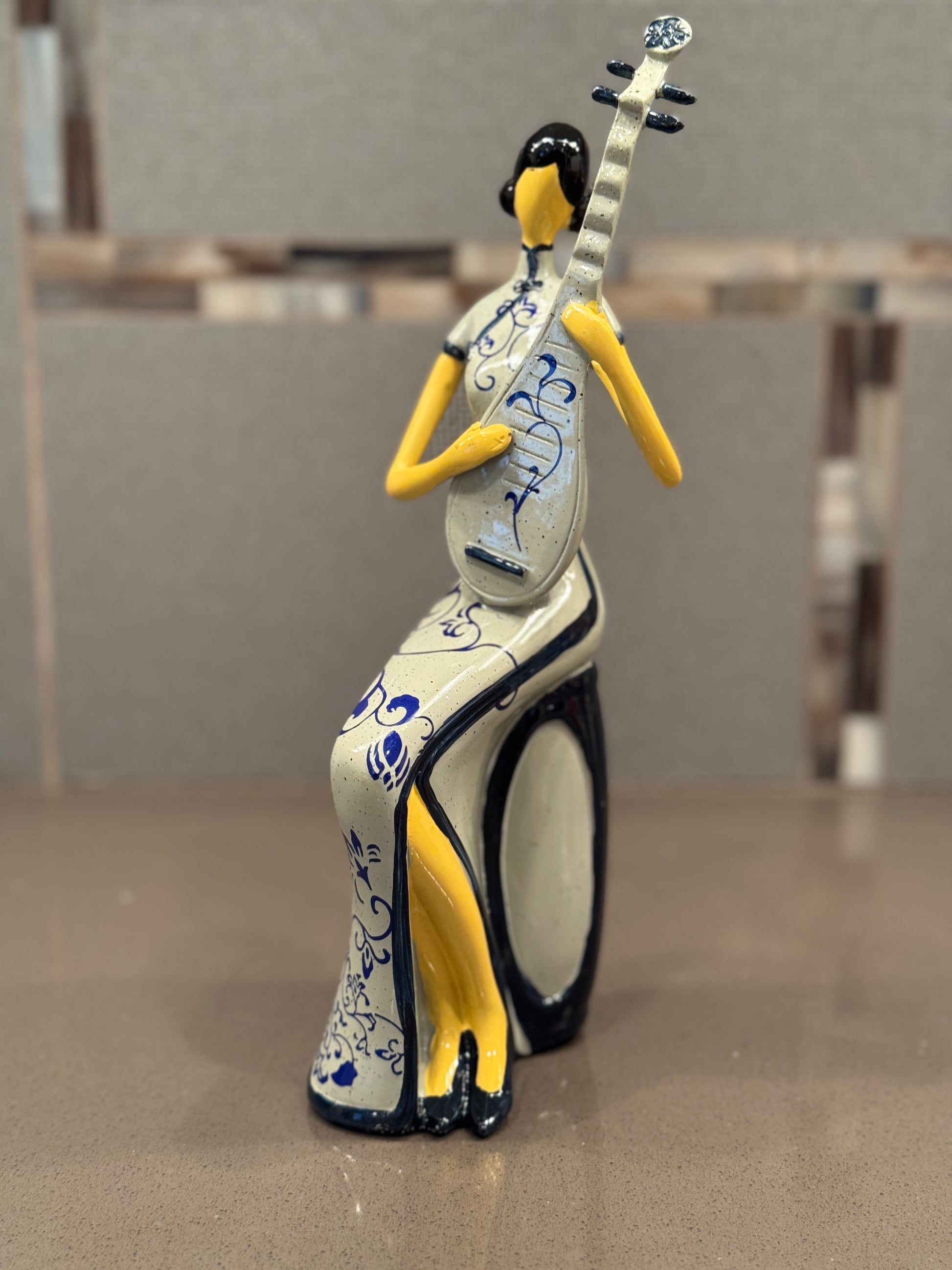 Capture the elegance of classical music with this charming resin figurine depicting a traditional Asian woman gracefully playing the pipa. Perfect for music lovers, collectors, and anyone who appreciates cultural artistry, this handcrafted piece brings warmth and sophistication to shelves, desks, or display cabinets. The intricate details showcase the beauty of this ancient stringed instrument and timeless cultural heritage. A delightful conversation starter that celebrates the artistry of traditional music.