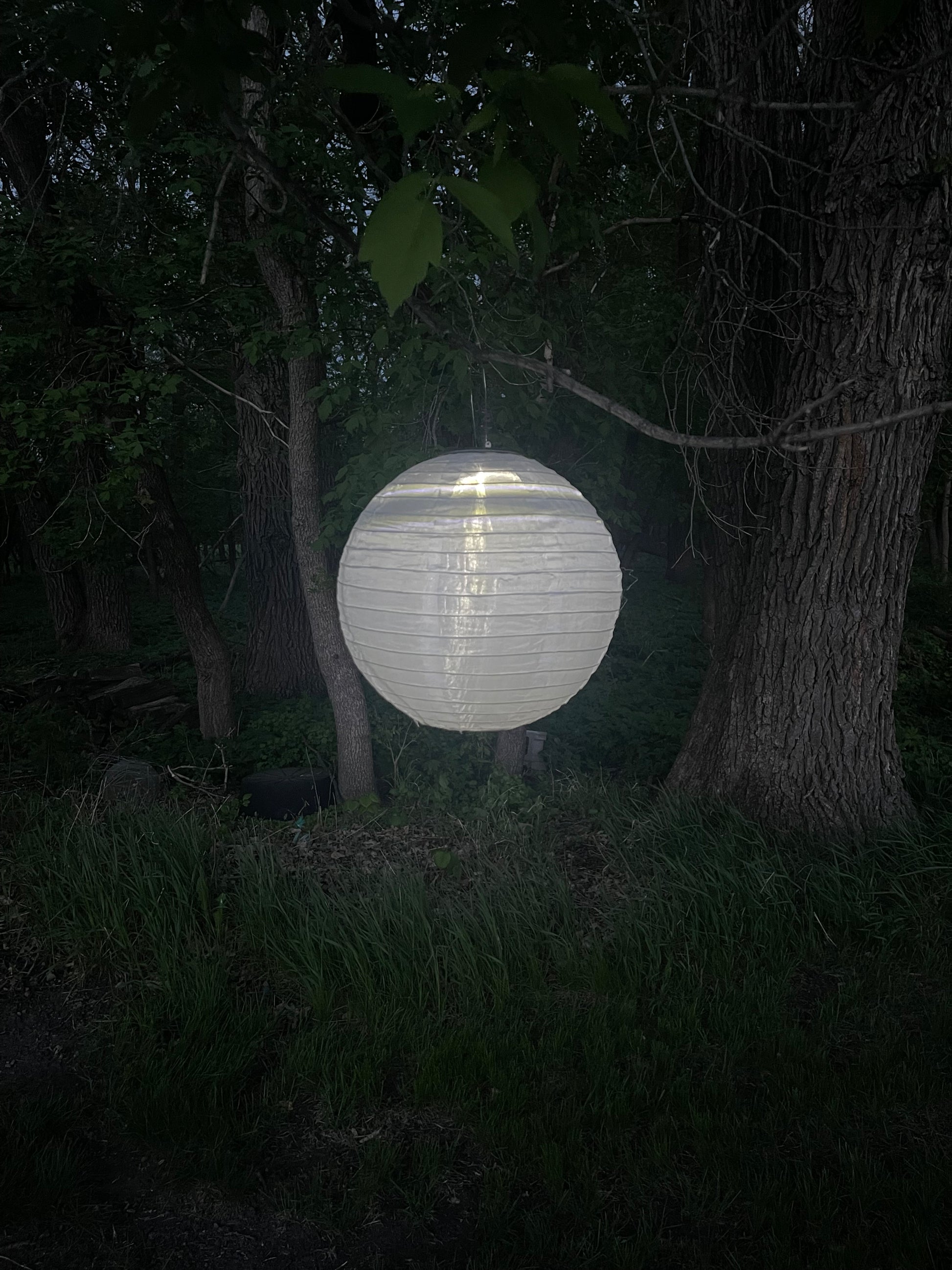 When dark is near, they lanterns turn on to sglow in the dark. Fun to hang from tree branches or wires.
